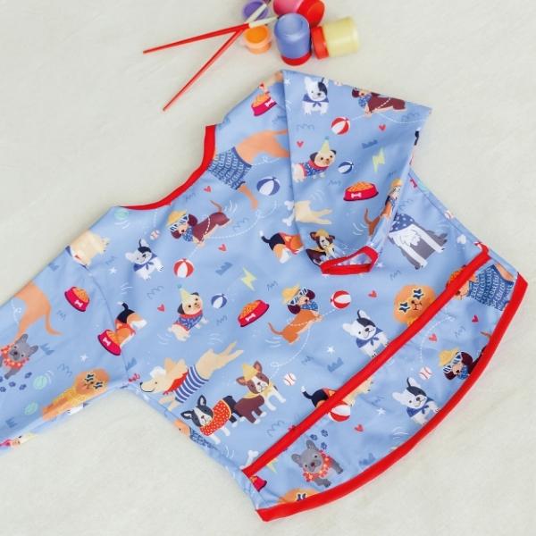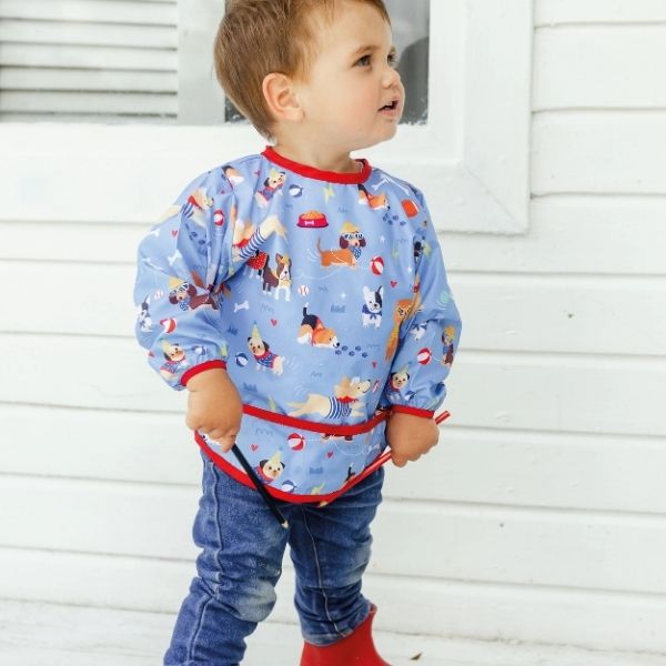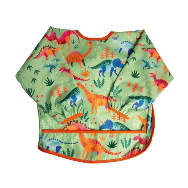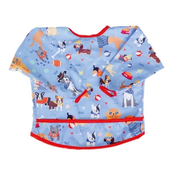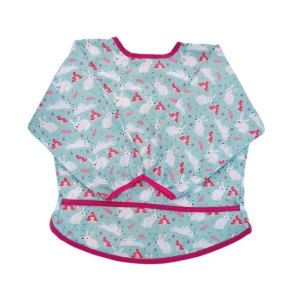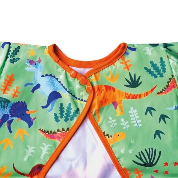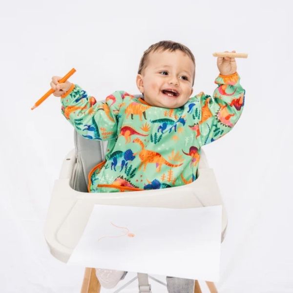 Babero de manga larga confeccionado en tela tifón sublimada con propiedades antifluidos que protege la ropa de tu bebé durante la alimentación, actividades creativas y juego.