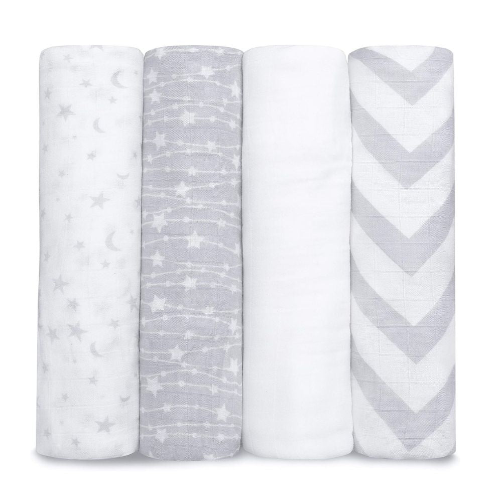 Generosas mantas de muselina de tamaño de 114 x 114 cm, Este versátil diseño de manta grande garantiza una cobertura completa para envolver de forma segura, tiempo cómodo boca abajo, sombra de cochecito o como una espaciosa alfombra de juego, haciendo que la crianza sea más conveniente todos los días.