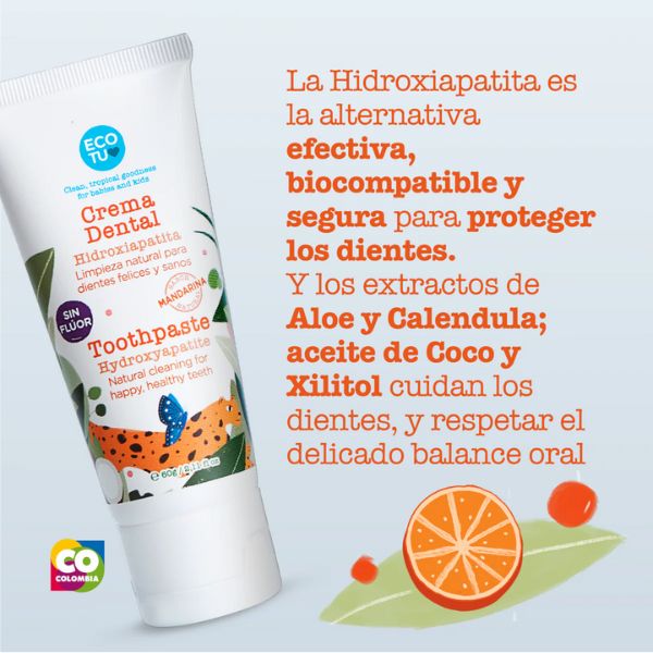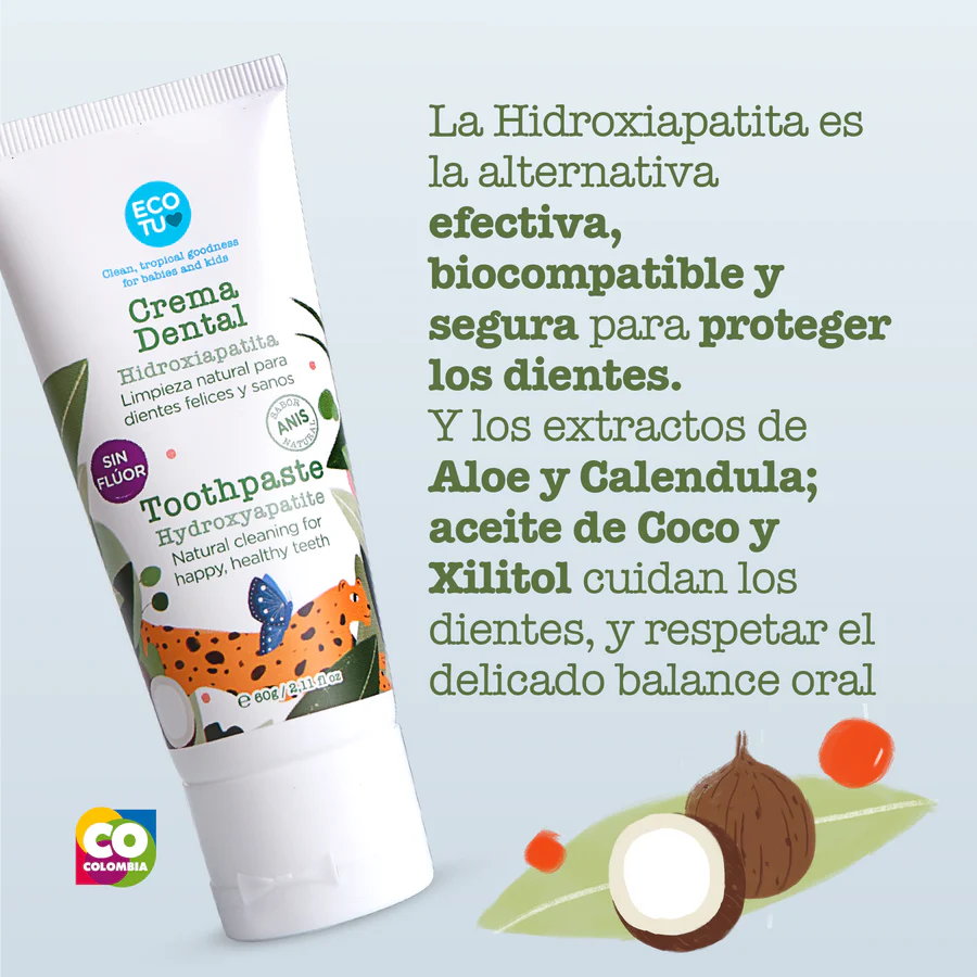 Ecotu Trae la Crema de Dientes sin Fluor más Fina! Nuestra fórmula es exclusiva y contiene Hidroxiapatita de Calcio, ingrediente preferido por NASA.