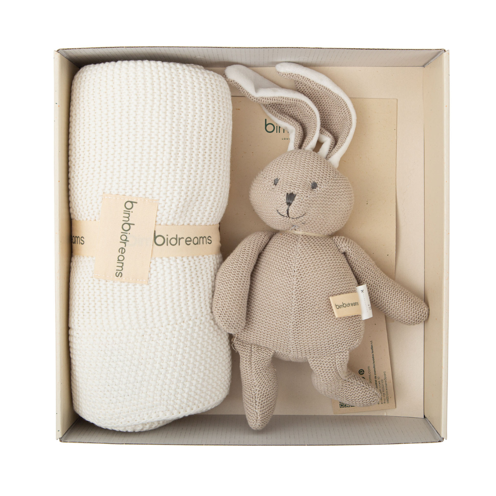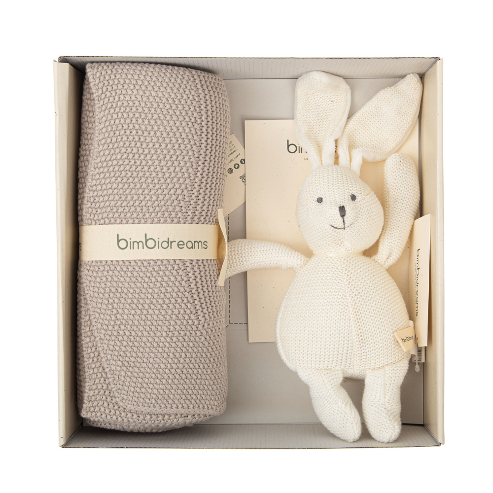 Caja de Regalo Manta Tricot y Peluche para Bebé Bimbidreams